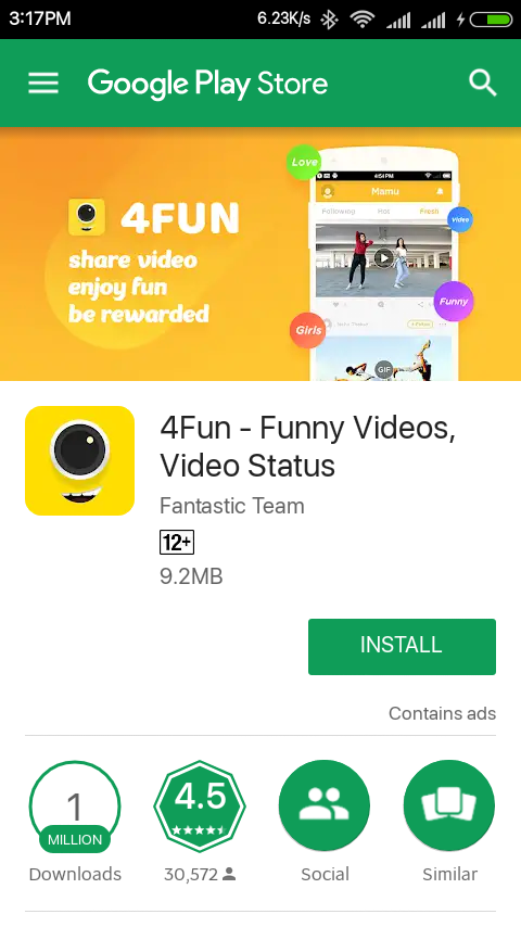 इंसटाल करने के बाद एप को ओपन कीजिये, इसमें आपको देख सकते है। इस एप को 1 मिलियन यानि 10 लाख लोगों ने डाउनलोड किया है। जबकि 4.4 की रेटिंग मिली हुई है। जो बहुत अच्छी रेटिंग मानी जायेगी। इस एप में आप कुछ शार्ट वीडियो शूट करके शेयर कर सकते है। इसके अलावा इसमें दिए गए वीडियो को देख भी सकते है। यदि आप अपना वीडियो या कोई भी वीडियो अपने किसी भी सोशल मीडिया एकाउंट पर भेजते है। आपको कुछ एक बार भेजने के 1 रुपये मिलते है। जो तुरन्त अपके 4फन एप के एकाउंट में जमा हो जाता है। इस एप को ओपन करेंगे। तो आपको नीचे दिए गए चित्र के अनुसार एक इंटर फेस दिखाई देगा।