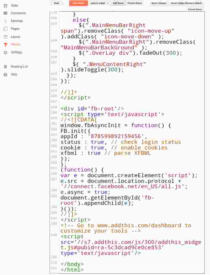 Step3-जब आप tool को activate कर लेंगे। तो आपको इसके code को copy करके blogger के edit html में paste करना है। तो चलिए जानते है । floating social media button लगाने के लिए आप addthis के dashboard में जाएं। यहां आपको get code के ऑप्सन पर click करना है ।जब आप वहां click करेगें। तो आपके सामने नीचे चित्र के अनुसार page खुल जायेगा। इसमे आप देख सकते है। Here’s your unique Code snippet. Click this code to copy it right to your clipboard.लिखा हुआ है। अब आपको इस code को कॉपी करके अपने blogger html में paste करना है। आप निचे दिए गए कोड को भी copy paste कर सकते है। अगर आप इस code को paste करेंगे। तो आपके blog पर share button आ जायेगा। लेकिन analysis report आप नही देख पाएंगे। जबकि अपने gmail account से login करके आप share button का यूज करेंगे। तो analysis report देख सकते है ।