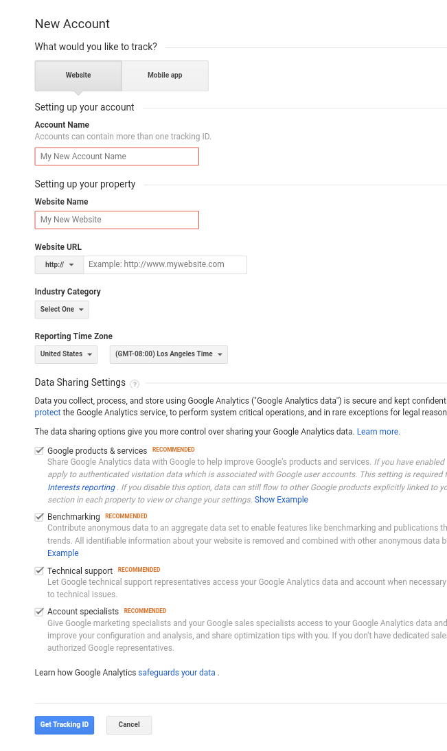 Step3- साइनअप पर क्लिक करने के बाद आपके सामने निचे दिए गए चित्र के अनुसार एक नया पेज आ जायेगा। इसमे आप देख सकते है। कि यह एक फॉर्म की तरह है। इसमें आपको अपनी वेबसाइट या ब्लॉग के बारे में लिखना है।यहां आपको सबसे ऊपर दो ऑप्सन website और mobile app का मिल जाएगा। आपको वेबसाइट वाले ऑप्सन पर क्लिक करना है। इसके बाद Account Name में आप अपनी वेबसाइट का नाम लिखें। जैसे मेरी दूसरी वेबसाइट yourphone360.in है। तो हम यहां इस पहले वाले बॉक्स में yourphone360 लिख सकते है। आपकी वेबसाइट या ब्लॉग का जो नाम है। आप उसे लिखें। अब दूसरा बॉक्स website Name का है। यहां भी आप वही नाम लिखकर आगे बढ़े।