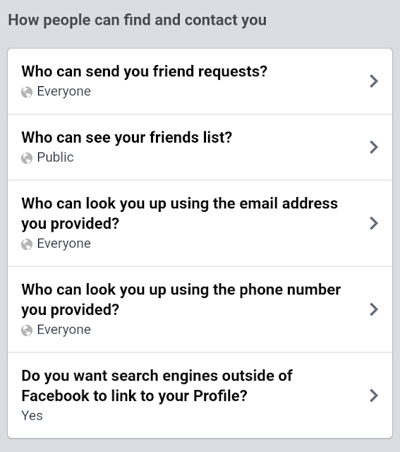 4-Who can look you up using phone number you provided इसमें आप देख सकते है। यहां भी Everyone सेलेक्ट है। आपने जो फेसबुक एकॉउंट में अपना मोबाइल नंम्बर यूूज किया है। उसे कोई भी देख सकता है। इस पर क्लिक करके आप अपने अनुसार सेट कर सकते है। सबसे लास्ट में जो ऑप्सन दिया गया है। उसमें आप देख सकते है। कि yes लिखा हुआ है। इसका मतलब है। कि आपका फेसबुक प्रोफाइल फेसबुक के अलावा अन्य सर्च इंजन पर भी दिखाए। आपने देखा होगा। कि गूगल पर सर्च करने पर आपका फेसबुक प्रोफाइल दिखाई देता है। इसलिए इस सेटिंग को Yes ही रहने दें। यह जानकारी आपको कैसी लगी। कमेंन्ट करके जरूर बताइये।