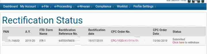Step-2 जब आप submit पर क्लिक करेंगे। तो आपके सामने नीचे दिए गए image के अनुसार page open होगा। इसमें आपको cpc order no. के नीचे दिए गए link पर click करना है। इसके बाद आप tds rectification status को देख पाएंगे।